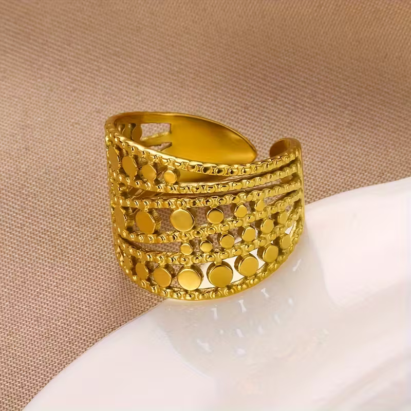 Adjustable Golden Mosaic Ring