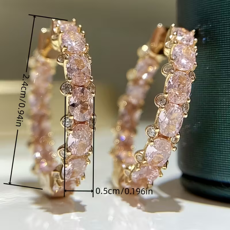 Elegant Inlaid Pink Crystal Hoop Earrings