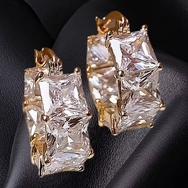 Inlaid Cubic Glass Gold Earrings
